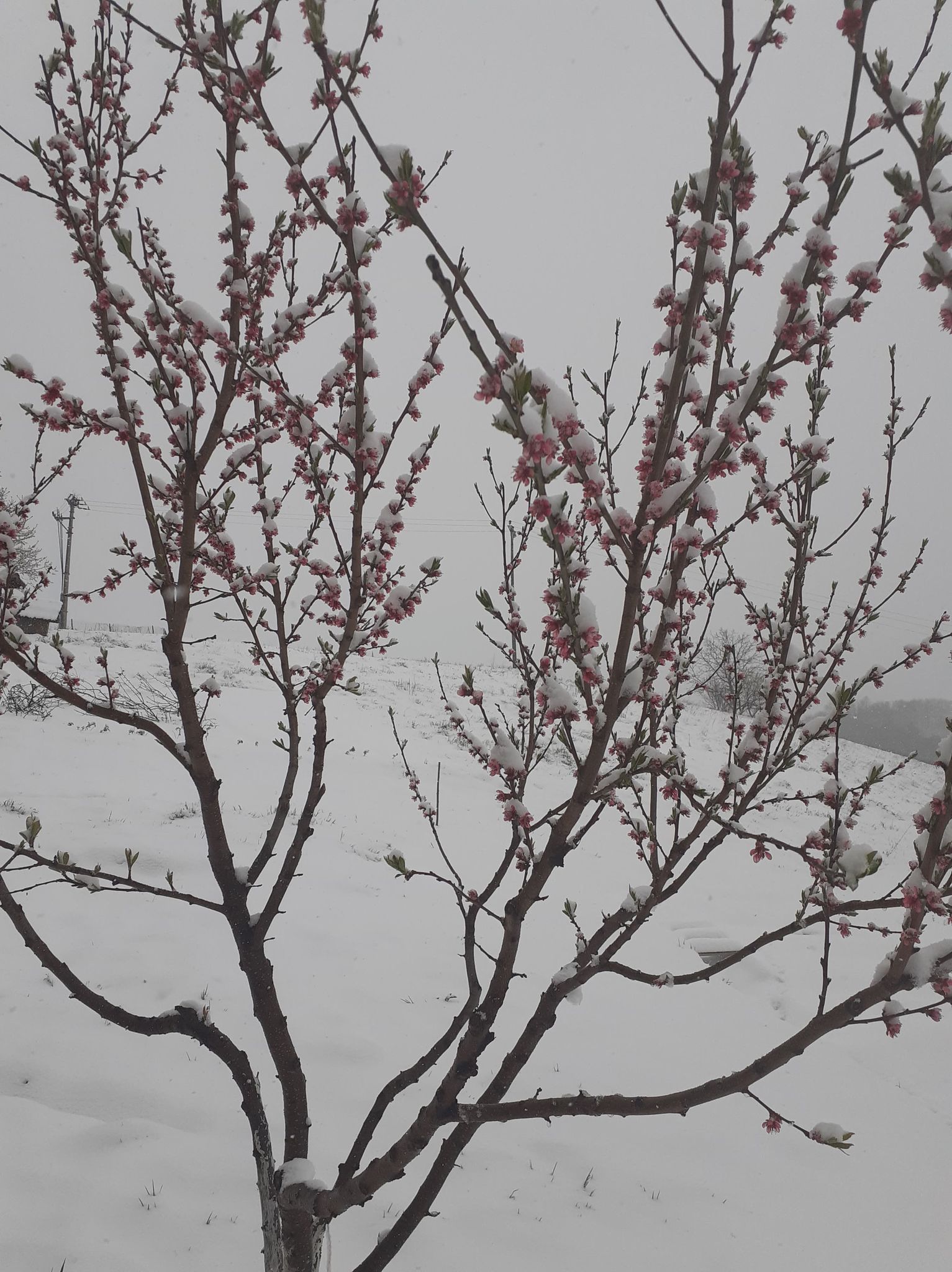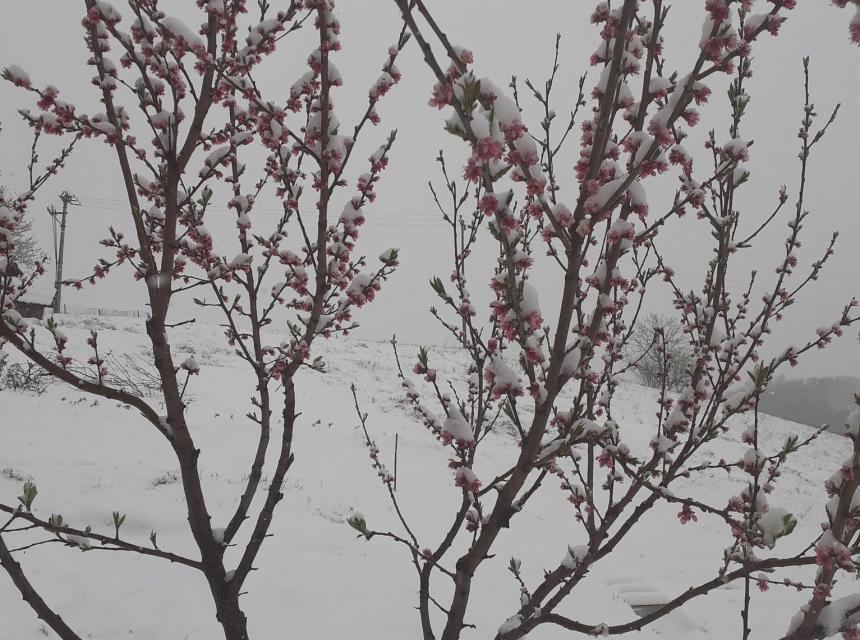 Početak proljeća donio nam je snijeg i niske temperature. Nakon mrazne noći, nedjelja na ponedjeljak, koja je dovela do oštećenja na otvorenim cvjetovima sorti jabuka, krušaka, breskvi i šljiva, uslijedile su padaline koje su formirale snježni pokrivač i na stablima voćaka.