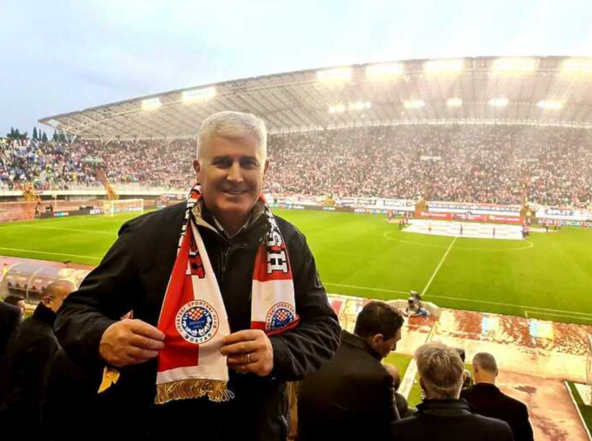 Čović se za ovu priliku ogrnuo i šalom Zrinjskog iz Mostara, inače aktuelnog lidera u Premijer ligi Bosne i Hercegovine.