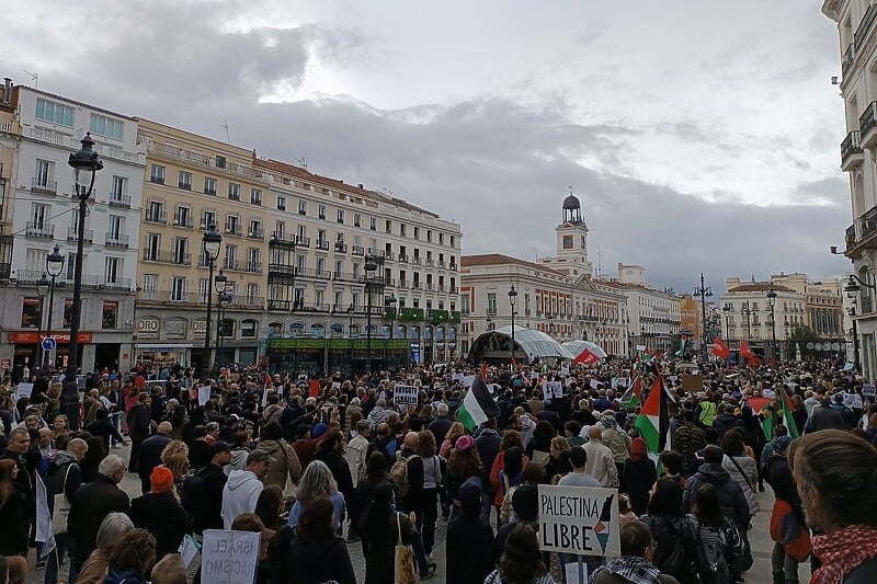 Oko 35.000 ljudi učestvovalo je u protestima prema informacijama centralne vlade u Madridu, što ga čini jednim od najvećih skupova podrške Palestincima u Španiji od napada Hamasa na Izrael ranije ovog mjeseca.