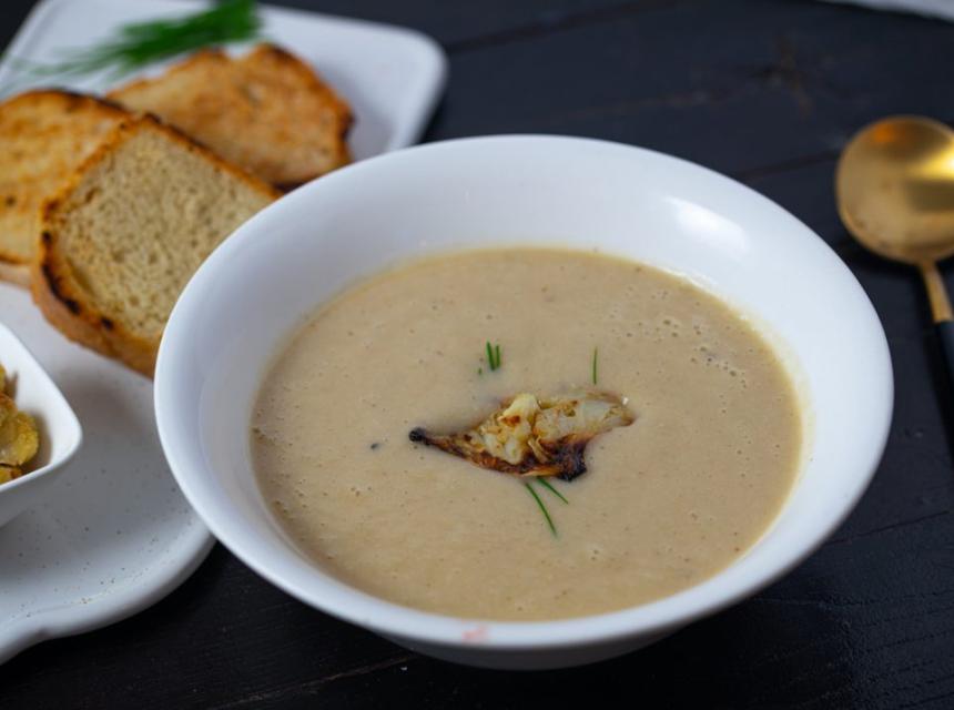 - Odvojite 4 najljepše pečena cvijeta cvjetače, a preostalu prebacite u lonac. Kuhajte povremeno miješajući 20 minuta, kako bi se okusi povezali, a zatim dodajte polovinu povrtnog temeljca.