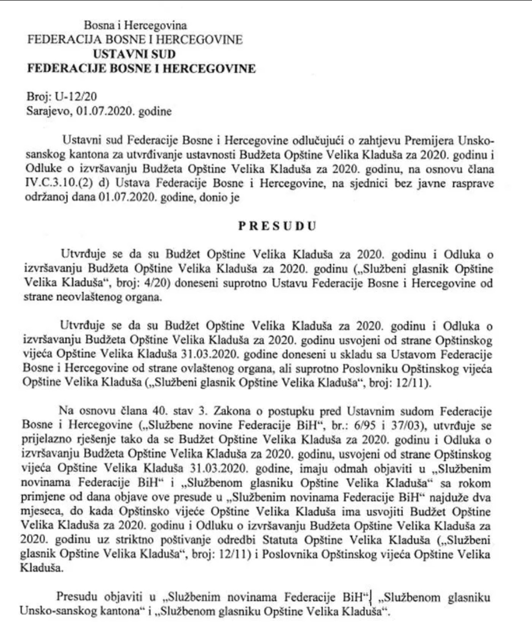 Za vrijeme produženog pritvora očekuje se podizanje optužnice za ozbiljna i teška krivična djela iz oblasti privrednog kriminala. Podsjećamo da je Ustavni sud Federacije BiH utvrdio da Budžet Općine Velika Kladuša za 2020. godinu kao i Odluka o njegovom izvršenju nisu donešeni u skladu sa Ustavom FBiH, a njega je nezakonito proglasio upravo Fikret Abdić, što je za istragu u ovom predmetu važna činjenica zbog poprilično visokih zamašnih isplata koje su obavljene od proglašenja Budžeta do hapšenja načelnika i Sulejmana Silića te još četiri namještenika koja su priznala odgovornost i puštena da se brane sa slobode. E. Š.