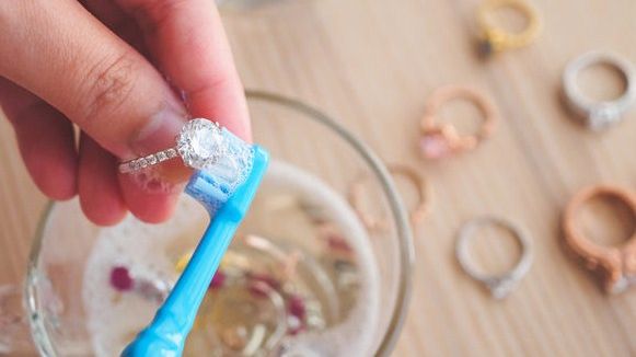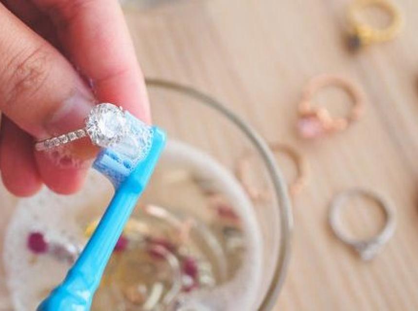 Ovo je jedan od najlakših i najsigurnijih metoda za čišćenje bižuterije kod kuće. Razblažite malo sredstva za pranje suđa s toplom vodom u posudi. Potopite nakit i ostavite da odstoji 10 minuta kako bi nakupljena prljavština omekšala. Nježno operite nakit četkicom za zube; ne zaboravite na ćoškove i manje dostupna područja. Isperite hladnom vodom i osušite nakit mekom krpom.