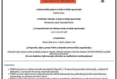 Narandžasti alarm u BiH: Vjetar pojačava, evo gdje je najkritičnije