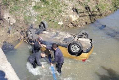 Saobraćajka u Krajini: Automobil sletio s ceste i završio prevrnut u vodi (FOTO)
