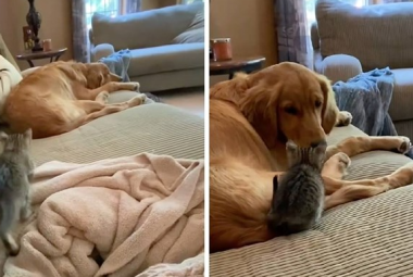 Mačić se prišuljao zlatnom retriveru: Ovakav rasplet vlasnik nije očekivao