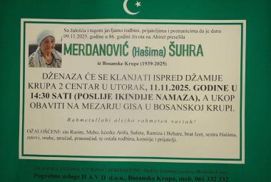 Na Ahiret preselila Merdanović (Hašima) Šuhra