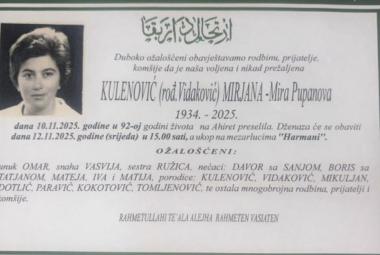 Na Ahiret preselila Kulenović (rod. Vidaković) Mirjana – Mira Pupanova