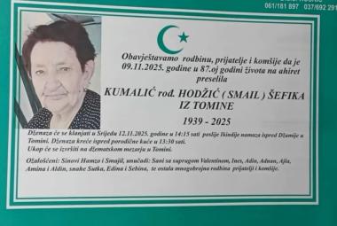 Na Ahiret preselila Kumalić rođ. Hodžić (Smail) Šefika