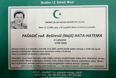Na Ahiret preselila Pašagić rođ. Beširević (Najil) Hata-Hatema