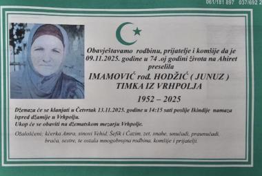 Na Ahiret preselila Imamović rođ. Hodžić (Junuz) Timka