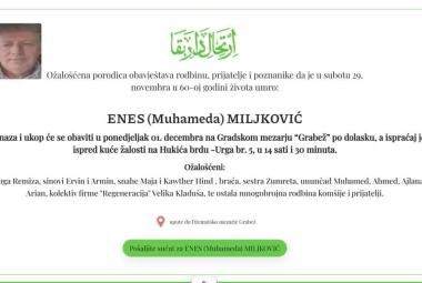 Na Ahiret preselio Enes (Muhameda) Miljković