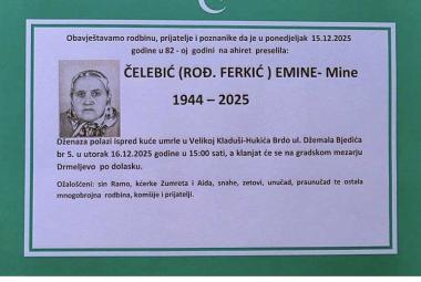Na Ahiret preselila Čelebić (rođ. Ferkić) Emine – Mine