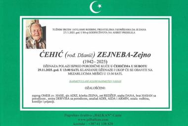 Na ahiret preselila ĆEHIĆ (rođ. Džanić) ZEJNEBA – Zejno
