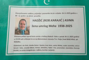 Na ahiret preselila HADŽIĆ (rođ. KARAJIĆ) ASIMA