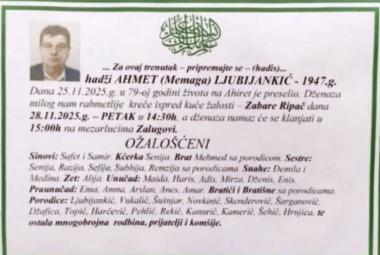 Na Ahiret preselio Hadži Ahmet (Memaga) Ljubijankić