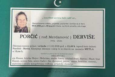 Na Ahiret preselila Porčić (rođ. Merdanović) Derviše