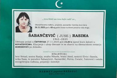 Na Ahiret preselila Šabančević (Juse) Rasima
