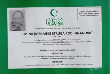 Na Ahiret preselila EMINA (MEHMED) STRUGA ROĐ. SINANOVIĆ