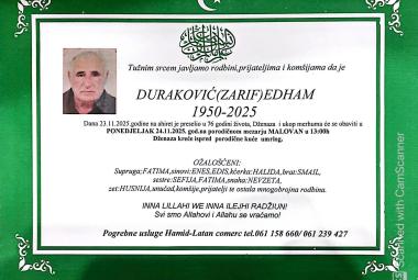 Na Ahiret preselio Duraković (Zarif) Edham