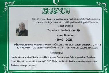 Na ahiret preselila Topalović (Nuhić) Hasnija