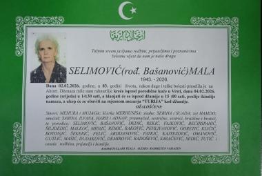 Na Ahiret preselila Selimović (rođ. Bašanović) Mala