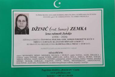 Na Ahiret preselila Džinić (rođ. Šumar) Zemka