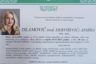 Na Ahiret preselila Islamović (rođ. Dervišević) Asmira