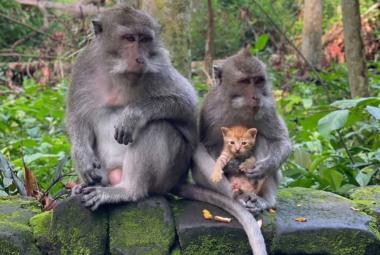 Dirljiv prizor ili opasnost? Majmun se brine o napuštenom mačiću