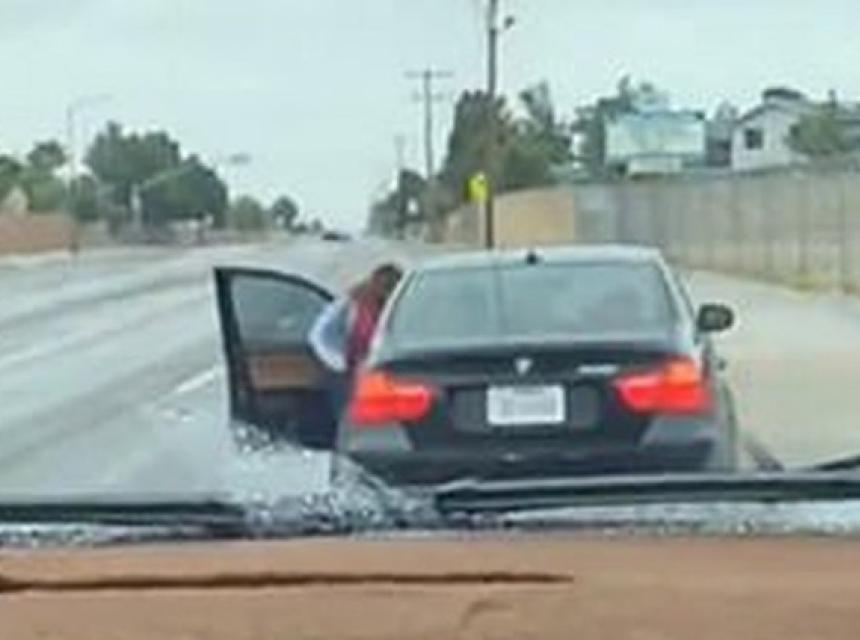 Nakon što ju je poslušao, bijesno je odmarširala do automobila, otvorila vrata i izmlatila ga.