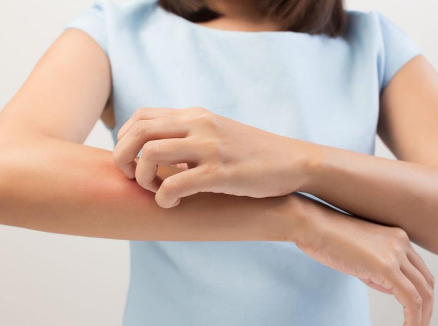 Naglo izbijanje blijedo crvenog osipa, koji je izbočen i svrbi, a pojavljuje se u području ugriza ili po cijelom tijelu može ukazivati na alergijsku reakciju.
