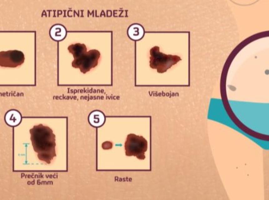Melanom se može pojaviti kao novi mladež ili promjena na mladežu koji već imate - pogledajte ilustraciju i znat ćete na kakve mladeže treba da obratite pažnju.