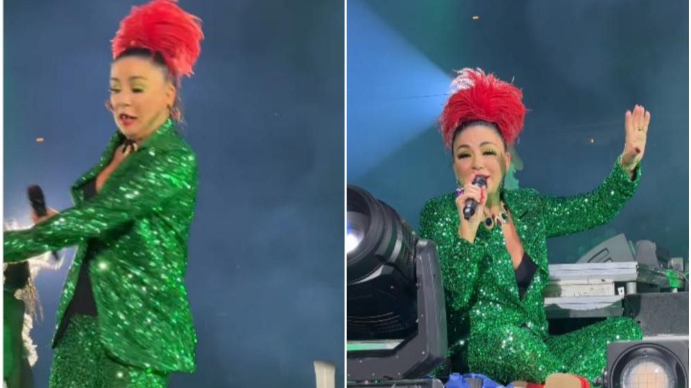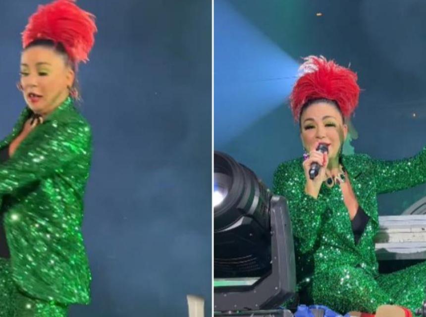Pjevačica Alka Vuica sinoć je nastupila u Areni Zagreb u okviru Megadance party-ja, gdje je doživela peh i srušila se nasred bine. U svom maniru, pojavila se u nesvakidašnjoj kombinaciji, šljokičastom- zelenom odijelu i visokim, roze potpeticama koje su joj napravile pravi karambol.