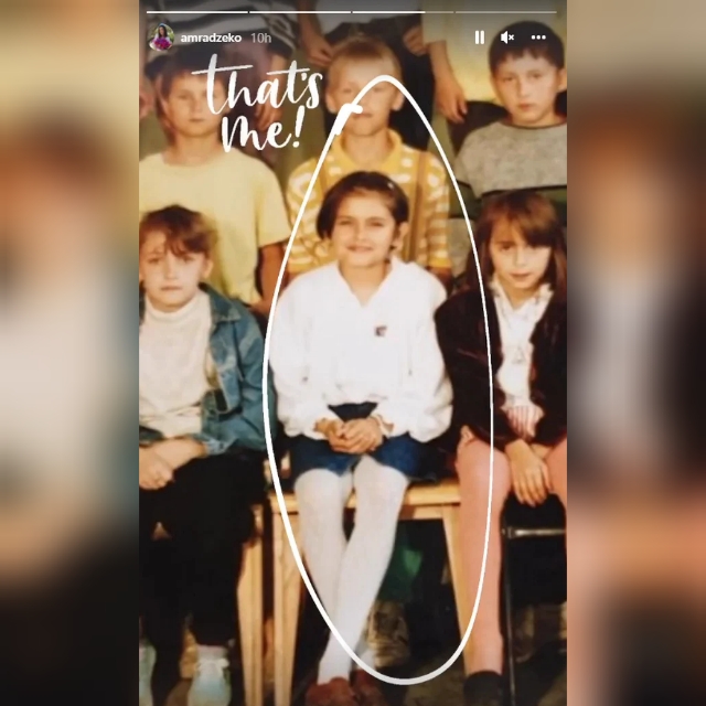 "Pogodi gdje je mala mama Amla", napisala je na prvom storyju na kojem se nalazi fotografija čitavog odjeljenja, dok je na drugom, za one koji je nisu prepoznali, otkrila gdje se nalazi na fotografiji: "To sam ja".