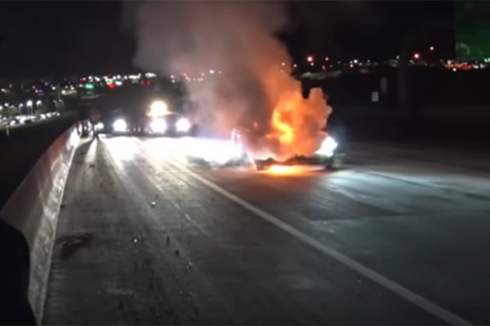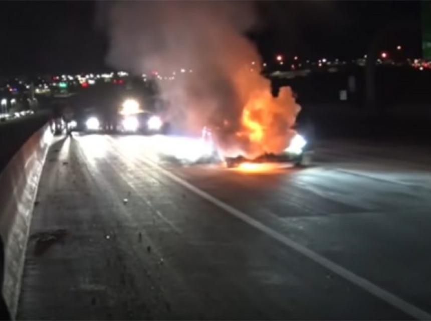 Stali su gotovo u posljednjem trenutku. Pola minuta kasnije auto je nestao u plamenu. Kasnije je utvrđeno da je uzrok požara kvar na kočionom sistemu gdje je ulje iscurelo na usijane kočnice.