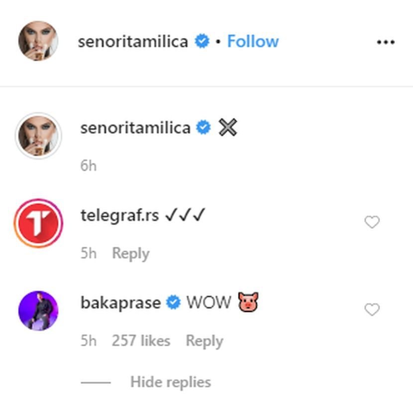 Ipak, Milica još nije odgovorila na pohvalni komentar, a kako će reagovati ostaje nam da vidimo.