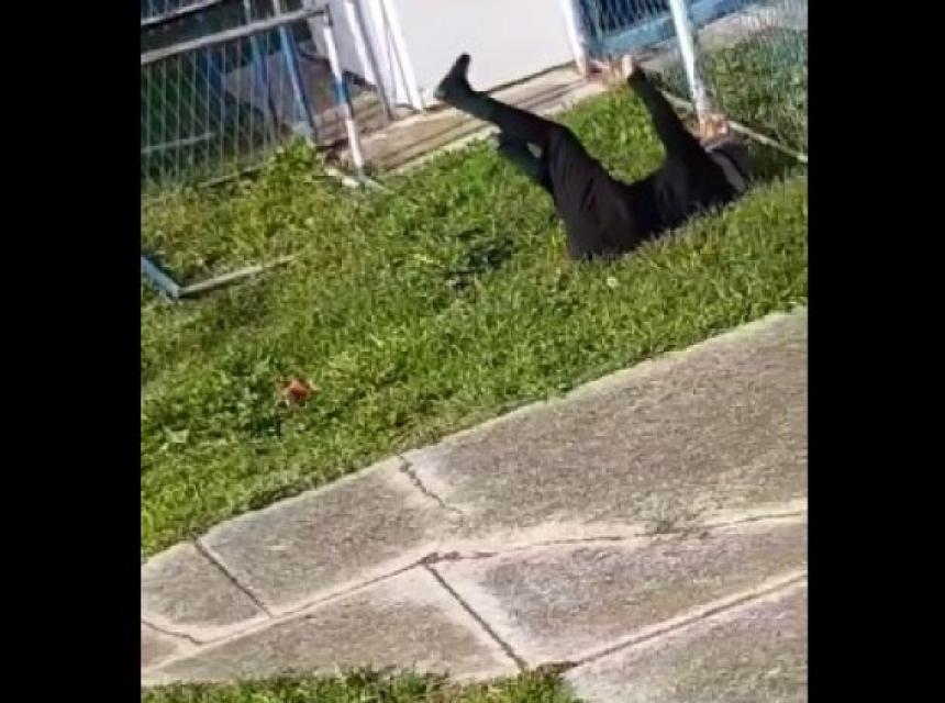 Stariju ženu su dvaput morali udaljavati sa terena u koji je ušetala s visoko podignutim rukama, nešto je dovikivala igračima i sudiji, a onda su je dvojica mladića, pomalo grubo, iznijela sa terena i udaljila s igrališta.