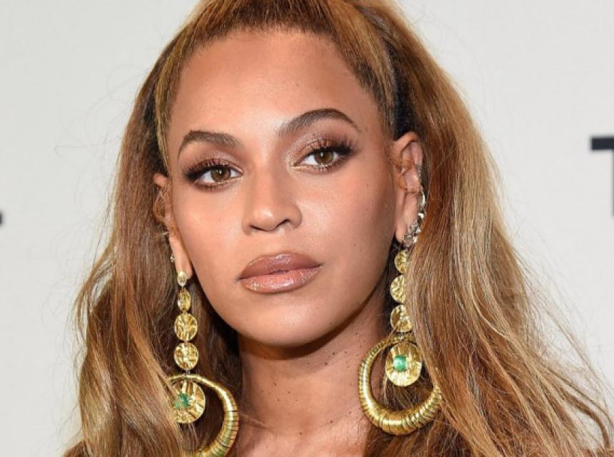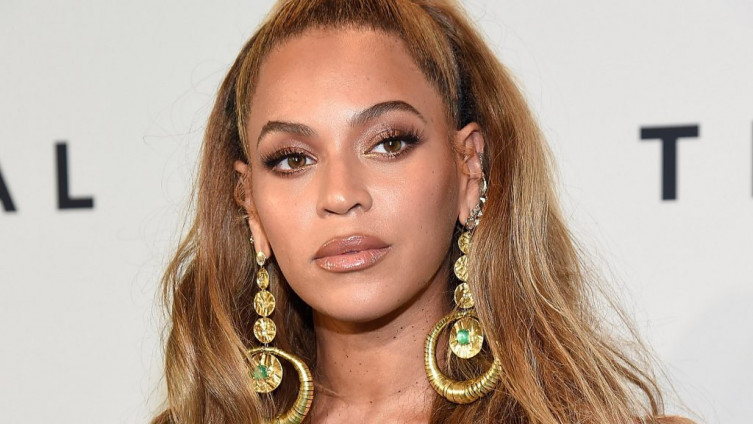 Bijonse je iskombinirala crvenu sako haljinu ispod koje nije obukla grudnjak i visoke čizme u istoj boji, a oba komada krase i ušiveni biseri.