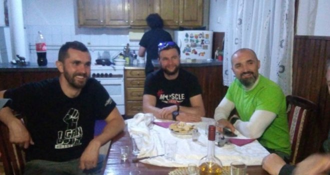 - Radovan ima tri kćeri, ženu, oca i majku. Upoznajem se sa svima, predobri ljudi, sretan sam što sam kod njih, kao da ih poznajem čitav život. Donose mi med i vodu, to je vjerovatno običaj, jer sam kasnije vidio da iznose i drugima koji su dolazili. Radovan me tjera da uđem u kuću, da se ne nahladim na terasi, ne da mi da sjedim na stolici, nagovara me da legnem, da se ispružim na krevetu. Pita me trebali mi čista odjeća, tuš, Radovanova žena pita šta ću da jedem, majka mi donosi kafu…a ja, ja bih samo vode, žedan sam i ne mogu da skinem osmijeh, sa lica, ne mogu da vjerujem kakav sam dan imao i kakav tek završetak dana. Ubrzo dolaze Zajko i Pezo, stižu na večeru, hrana domaća, jaja, sir, kajmak…zar se može poželiti bolje. Radovanov otac nas je počastio “maksuzijom”, rakija šljiva koju je sam radio prije 35 godina - opisao je Mirvad.