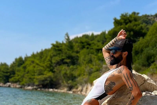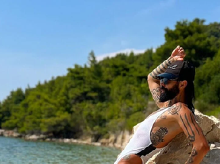 U jednodjelnom kupaćem kostimu modnog brenda RUFSKIN, do izražaja su došle brojne tetovaže koje krase njegovo tijelo. Na glavi je nosio kačket i sunčane naočale.