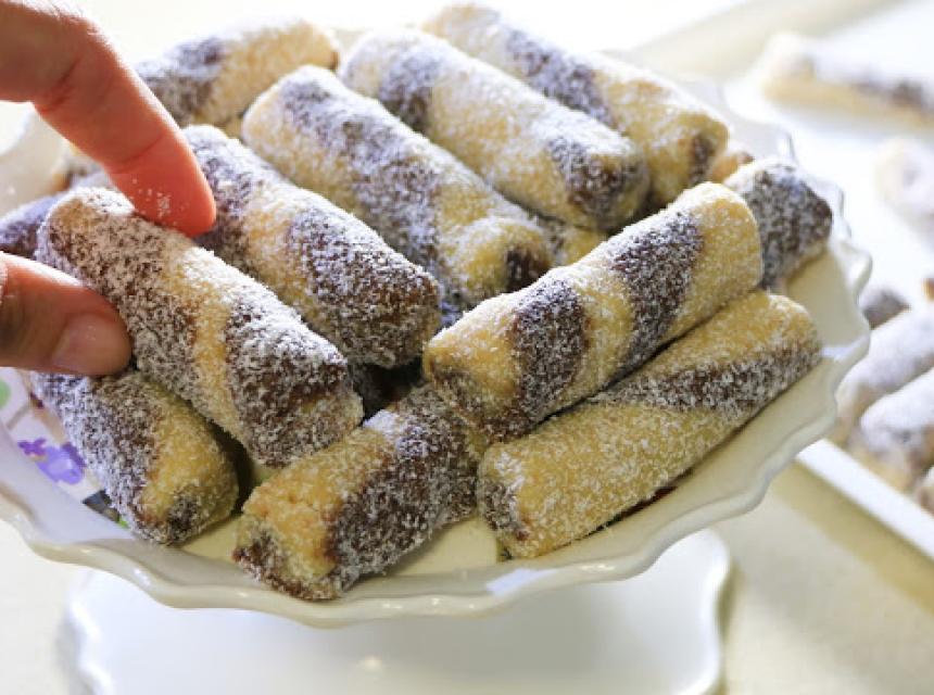 Urolajte i uvrnite da se naprave šare (možete pogledati u videu). Sijecite manje komade i uvaljajte u kokos. Ostavite kolače u frižideru da se stegnu. Prijatno!