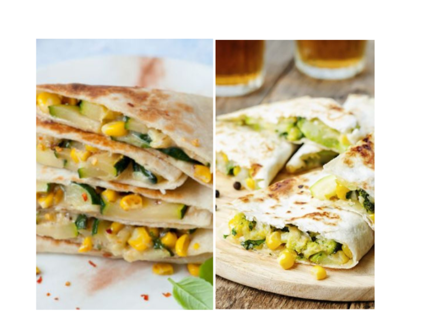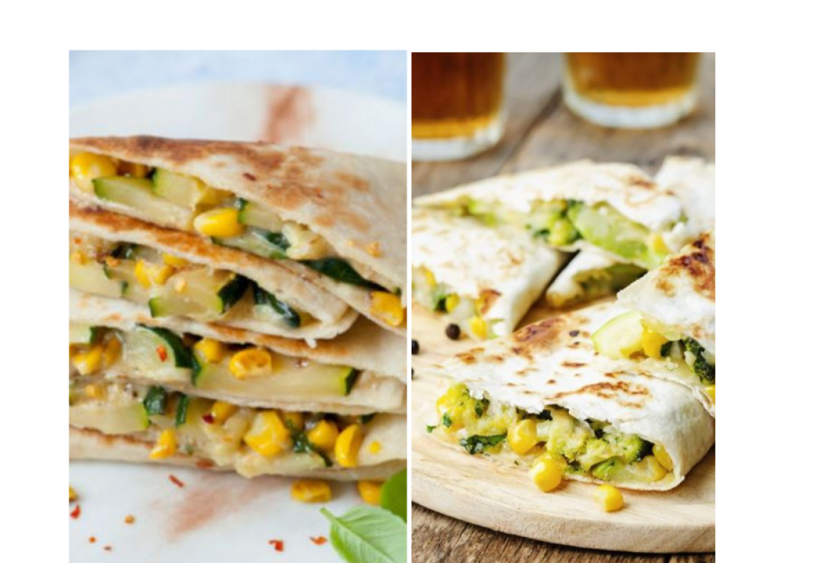 Na tanjir stavite jednu tortilju, pospite je s malo ribane gaude, rasporedite polovicu smjese od tikvica i jaja, opet pospite sirom i poklopite drugom tortiljom. Tortilje pažljivo prebacite u tavu pa prvo pecite s jedne strane dvije-tri minute. Zatim prebacite na drugu stranu i također pecite dvije-tri minute dok se sir ne počne topiti. Prilikom pečenja slobodno malo stišćite tortilje da se lakše spoje. Ponovite postupak s preostalim tortiljama i nadjevom. Kada su pečene, razrežite ih na trokute i poslužite.