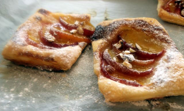 2. Na svaki kvadrat stavite nektarinu narezanu na listiće i maline.