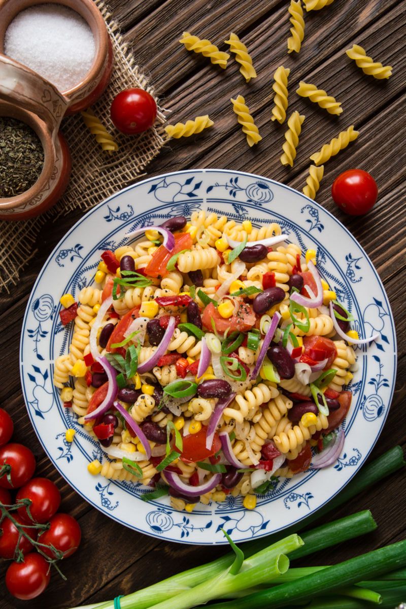 Na vruće ulje stavite usitnjen luk i bijeli luk, te posolite. Kad luk omekša, dodajte sitno narezanu mrkvu. Zatim dodajte piletinu, još malo posolite, pobiberite i dodajte vegetu. Možete dodati i malo vode, a onda umiješajte isjeckanu tikvicu i grašak. Pirjajte 10-15 minuta. Tjesteninu skuhajte u slanoj vodi s nekoliko kapi maslinovog ulja, ocijedite i prelijte hladnom vodom, a zatim je umiješajte u piletinu s povrćem i dodajte vrhnje za kuhanje te malo peršunovog lista. Čim vrhnje prokuha, tjestenina je gotova. Poslužite uz salatu.