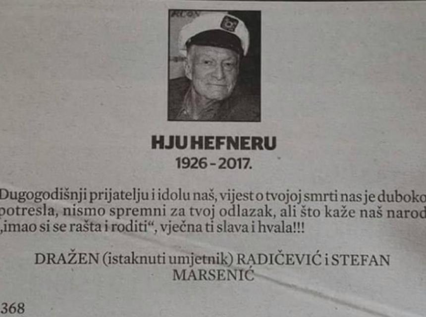 Smrt osnivača Playboya Hugha Hefnera pogodila je dvojicu Crnogoraca koji su u današnjoj štampi objavili čitulju.