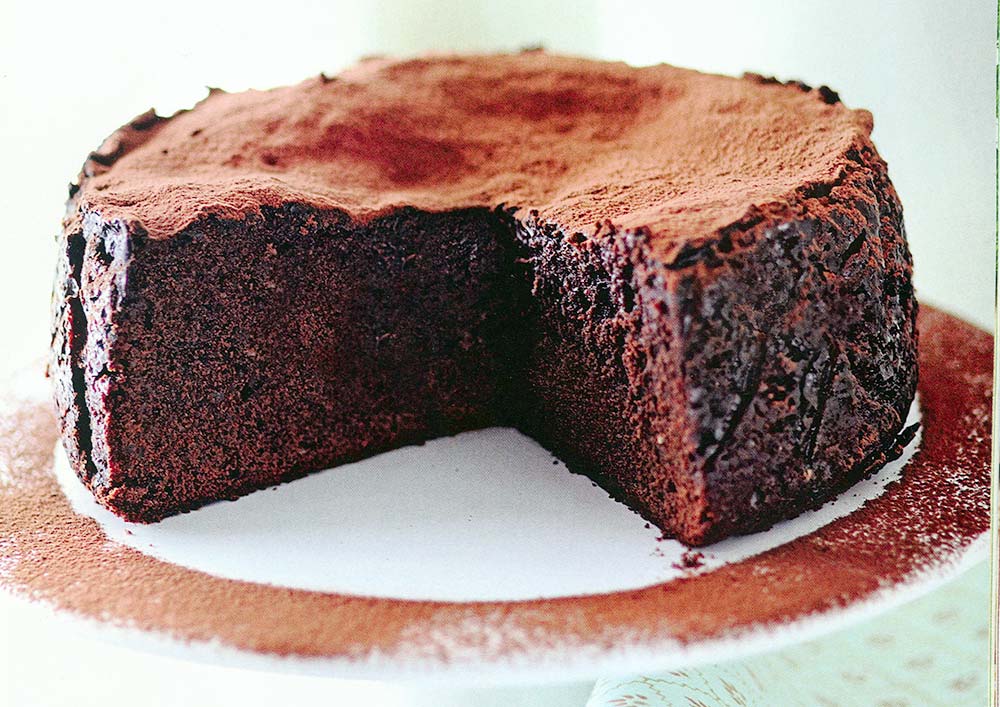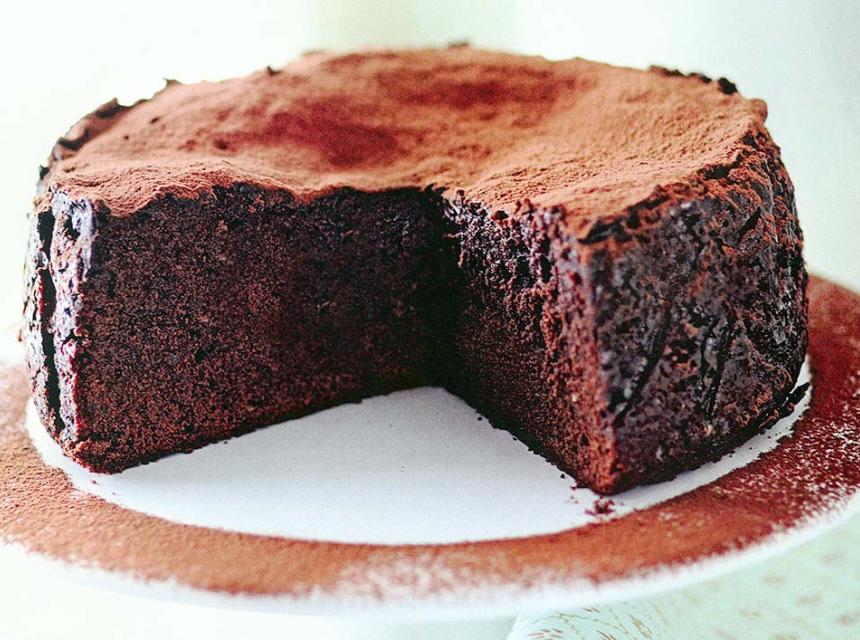 Priprema: Štapić vanilije rasijeći po dužini i izvaditi sjemenke. Isitnjenu čokoladu i puter otopiti na pari, ohladiti pa dodati prosijano brašno, prašak za pecivo, umućena jaja, mlijeko i sjemenke vanilije. Papir za pečenje skvasiti, procijediti, prekriti kalup te usuti smjesu. Posuti smeđim, pa običnim šećerom i s 30 g kakaa. Pažljivo preliti kafom i peći jedan sat na 180 stepeni. Tortu prekriti aluminijskom folijom i peći još 15-20 minuta. Izvaditi, ukloniti foliju, ohladiti i posuti ostatkom kakaa.