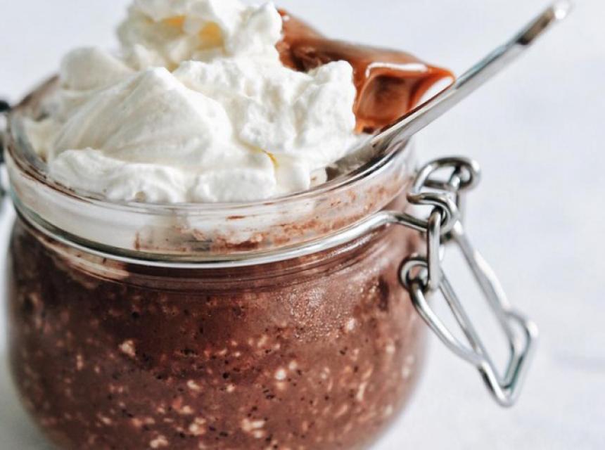 Zobenu kašu ostavite u frižideru preko noći, ili barem na nekoliko sati, kako bi postala gusta i kremasta. Prije serviranja umutite šlag.