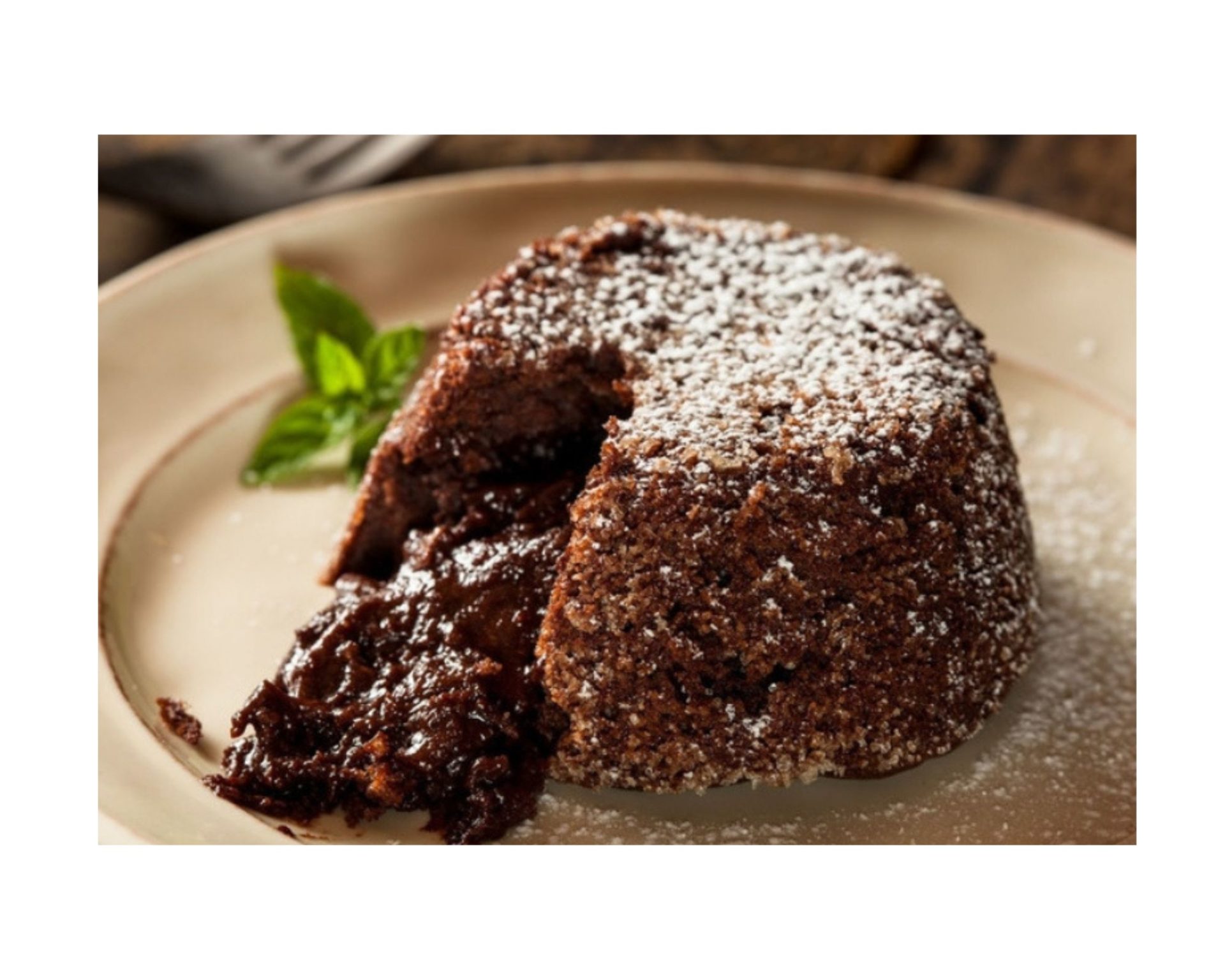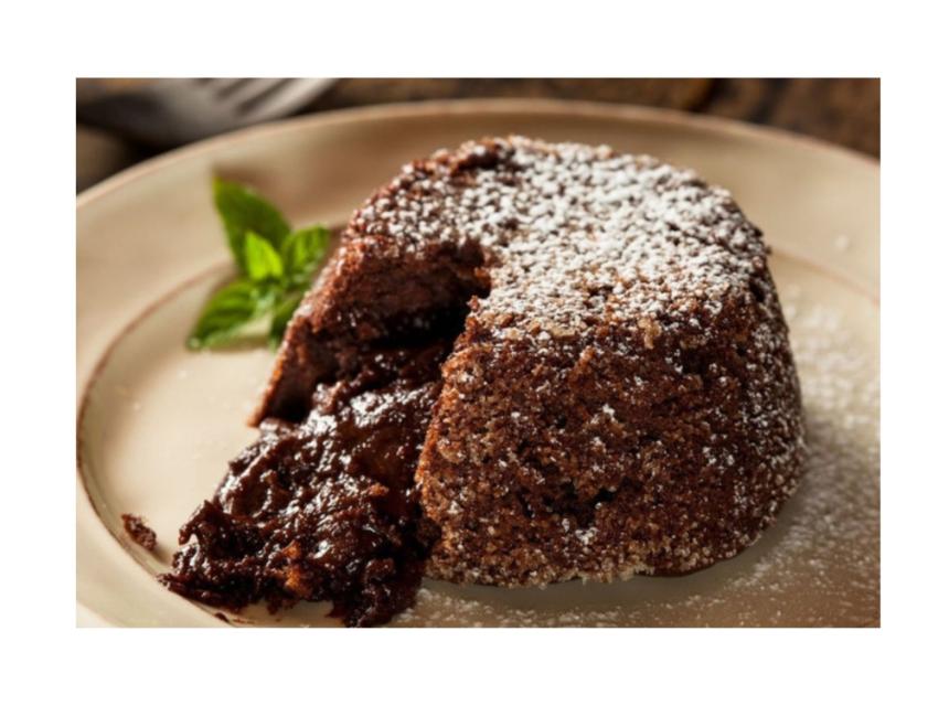 Umutite jaja i brašno mikserom, a čokoladu istopite na pari, pa i nju dodajte ovoj mješavini. Sve dobro promješajte pa smjesom punite kalupe za mafine. Stavite kalupe u rernu zagrijanu na 200 stepeni i pecite oko 7-8 minuta. Kolač treba ostati tečan unutra, a spolja da se dobro ispeče. _Ukoliko se slučajno predomislite pecite ga malo duže i dobit ćete klasične čokoladne mafine.