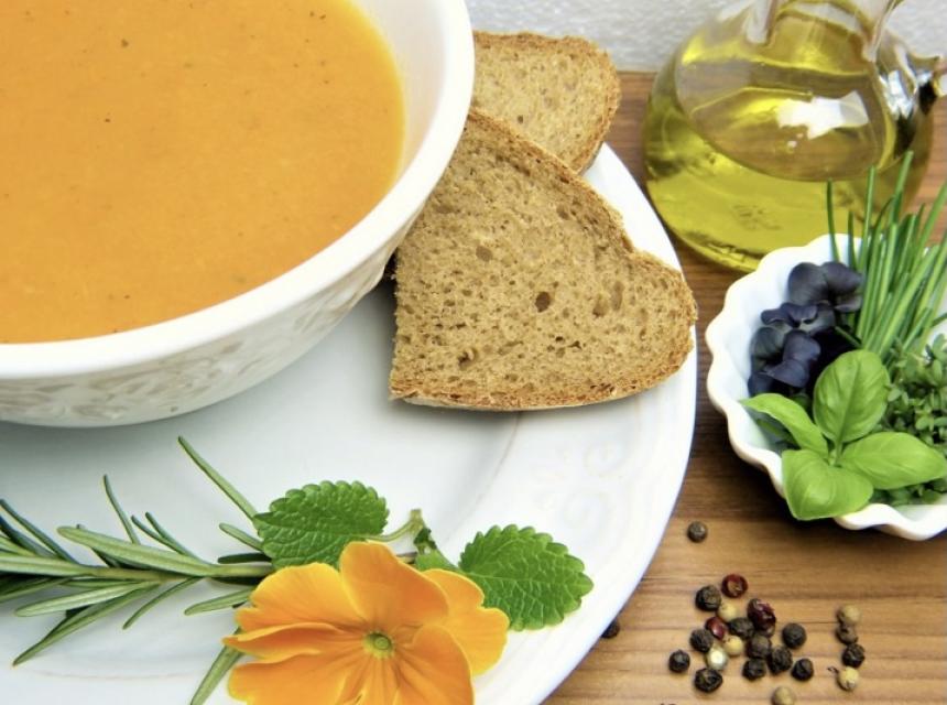 2. Kuhajte na srednjoj temperaturi oko 20 minuta, a zatim sve izblendirajte zajedno sa đumbirom. Dodajte kurkumu, med, limunov sok, so, biber i pustite da provri. Čorbu servirajte toplu.