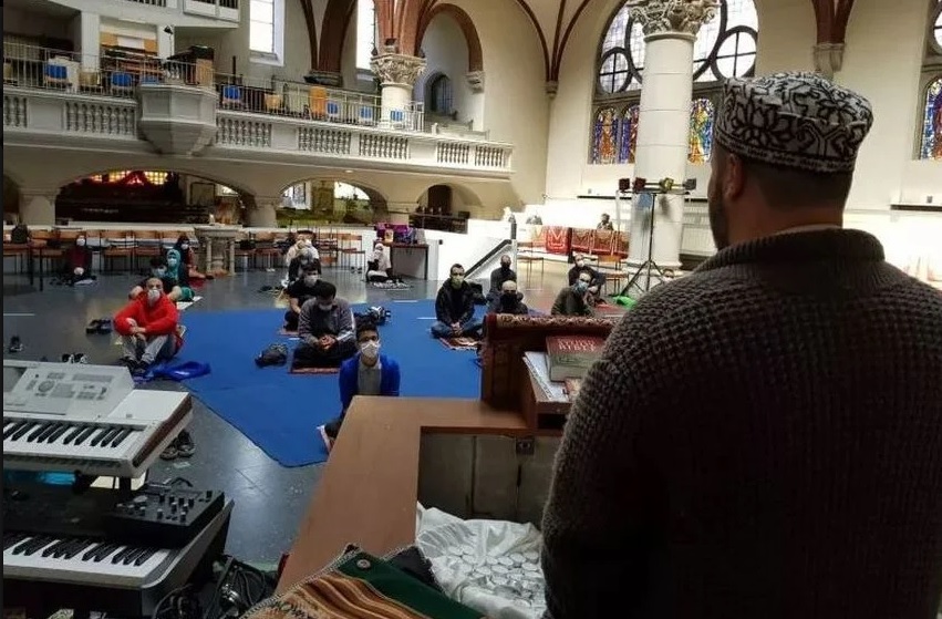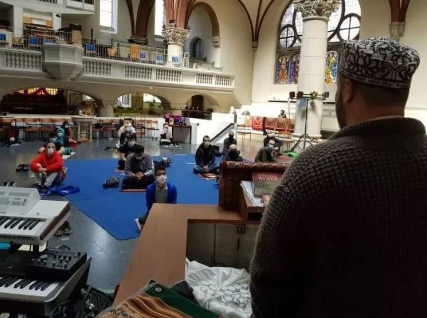 Evangelička crkva udaljena jedan kilometar priskočila je u pomoć i u njoj je uspješno smješteno 100 vjernika. Vjernici su bili razdvojeni u dvije grupe – jedna koja je slušala namaz na njemačkom, a druga na arapskom jeziku.