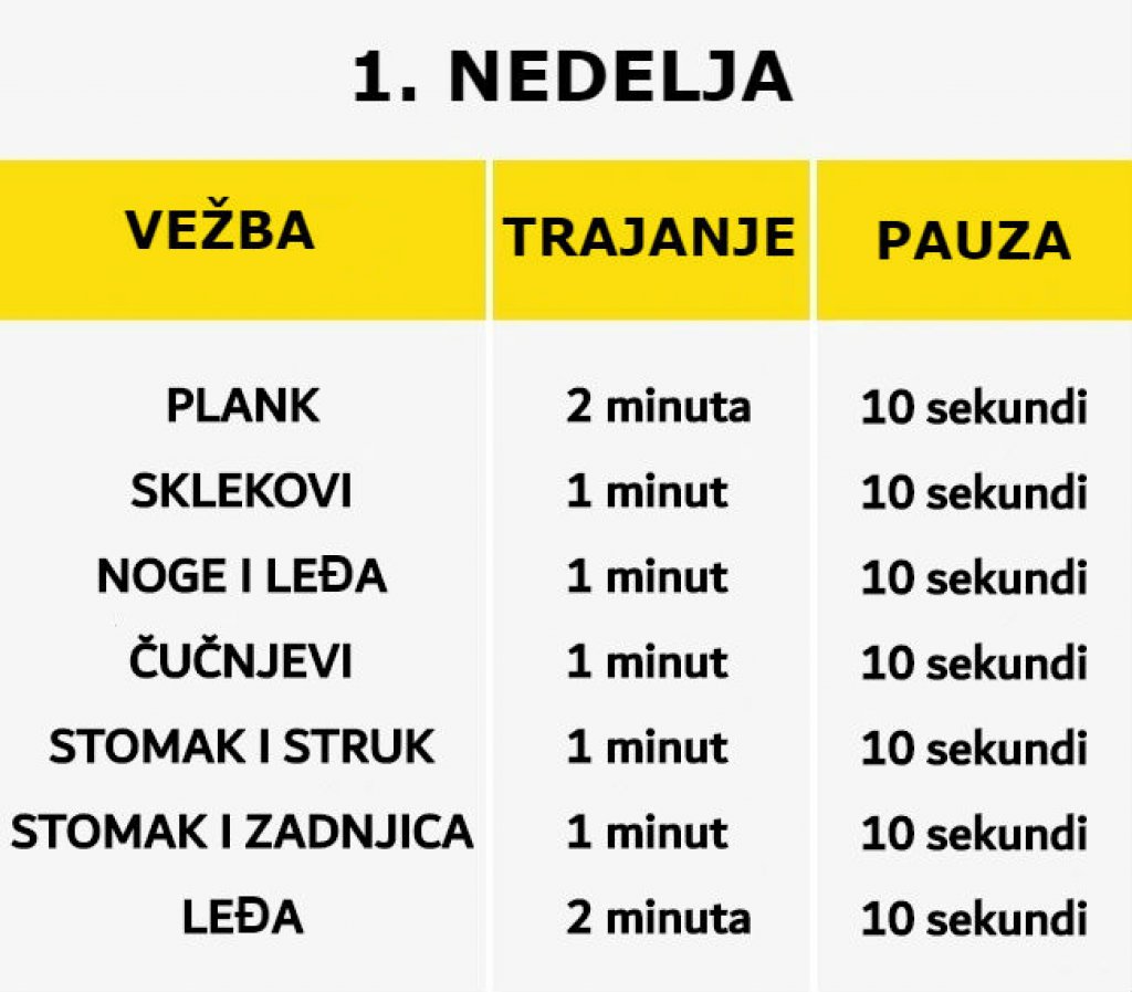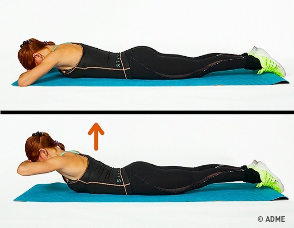 Kako raditi vježbu: Lezite na stomak, licem okrenutim prema podu, savijte ruke u laktovima i naslonite na njih glavu. Maksimalno podignite gornji dio tijela. Zadržite se na sekund u tom položaju i polako se spustite u prvobitni položaj.